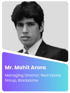 Mr. Mohit Arora is a Managing Director in the Real Estate Group, Blackstone and is based in Mumbai. Since joining Blackstone in 2013, Mr. Arora has been involved in various investments in India including India bulls, Salarpuria Office Portfolio and Panchshil Office Parks. Mr. Arora is an MBA from the Indian Institute of Management, Bangalore and a BCom (Hons) from Shri Ram College of Commerce Delhi. He has also obtained his FRM certification where he was a scholarship holder among the five selected from India by the Global Association of Risk Professionals and was ranked among the Top 25% (Highest Bucket in GARP Criterion) worldwide in both the levels. With over a decade of experience in private equity and real estate, he has made substantial contributions to Blackstone’s growth and success in the Indian market.